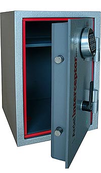 This safe has a capacity of 20 litres and weighs approximately 70 kg. Security features include four point locking, two retractable stainless steel bolts, intumescent fire seal and re-locking. The safe will accommodate A4 sized documents, there are two shelf positions. Additional shelf optional.